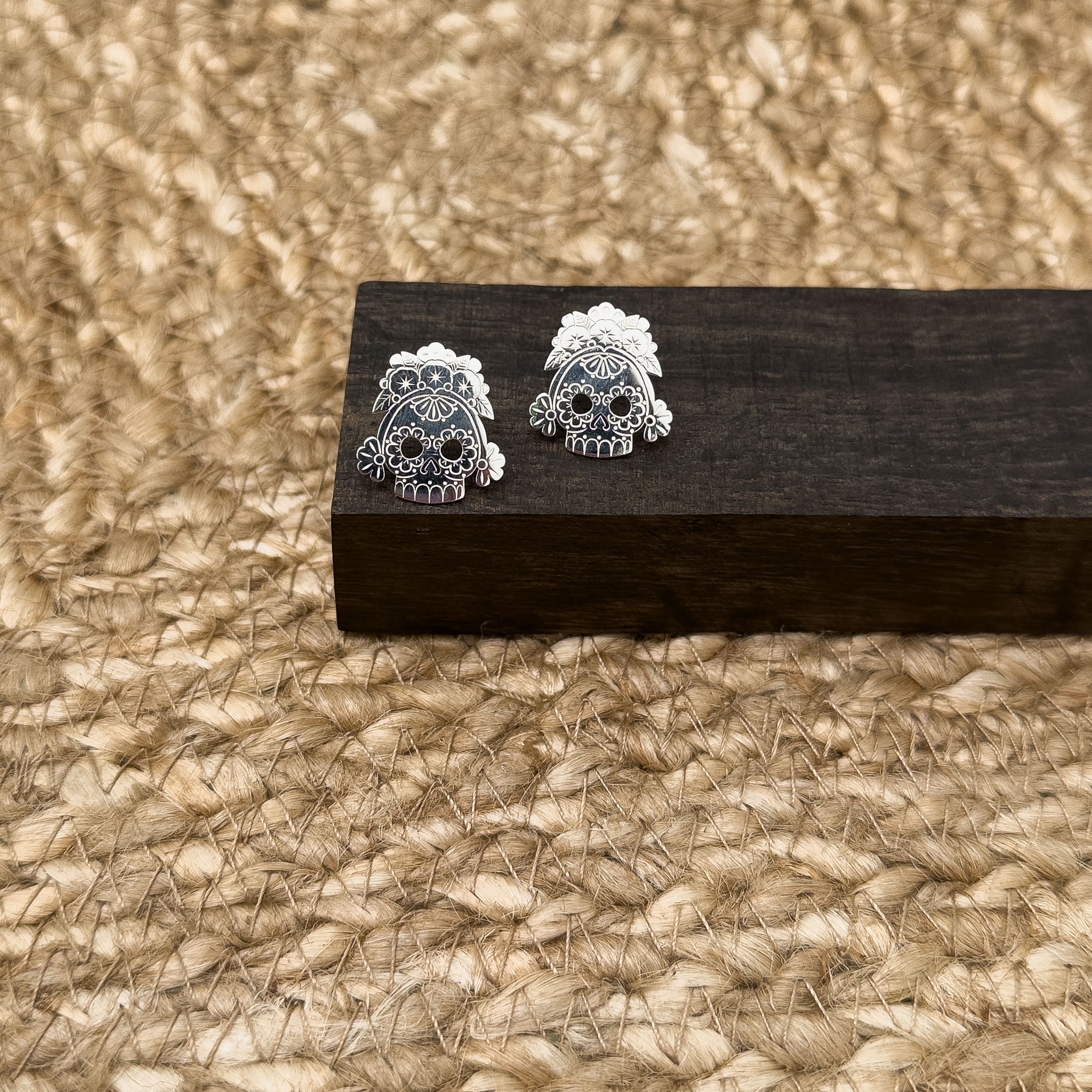 La tradicional catrina con diadema de flores diseñada en plata natural y cadena. tamaño: 2...